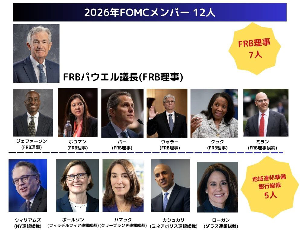 ↓↓以下が、2026年のFOMCメンバー(12人)です。