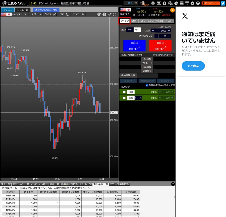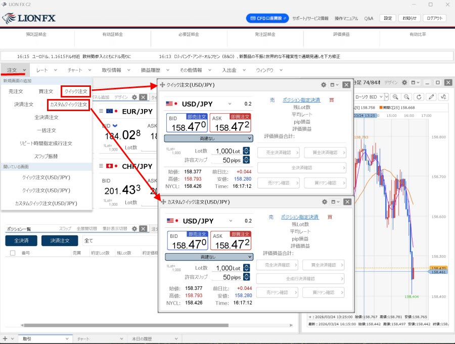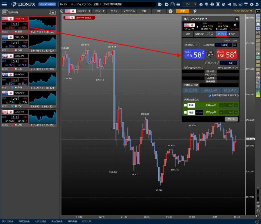 ヒロセ通商[LION FX]のスピード注文機能を紹介!【スピード注文は発注とポジション管理が1画面で可能で素早いFX取引に最適】[※2026年4月1日最終更新]
