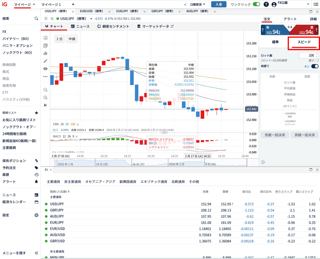 IG証券のスピード注文機能を紹介!【スピード注文は発注とポジション管理が1画面で可能で素早いFX取引に最適】[※2026年3月2日最終更新]