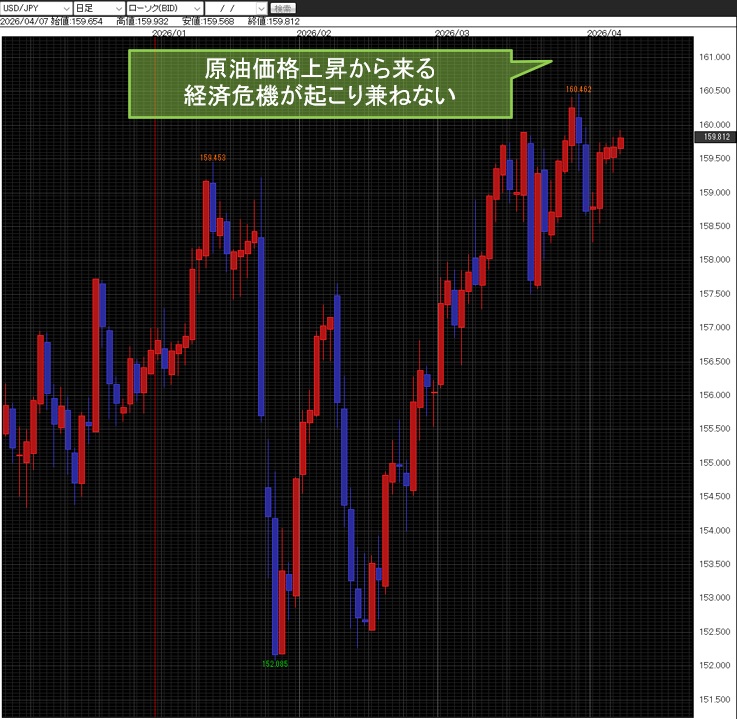 実際、大規模な戦闘が起こり、明日8日(水)の日本時間午前9時が停戦交渉期限だが、イランが湾岸の産油国を攻撃し、生産設備の破壊が進んだりするとホルムズ海峡から解放されなくとも原油生産が大きく減少するので価格上昇が起こってしまうかもしれない。