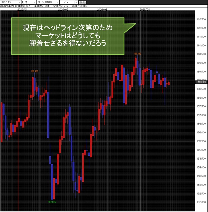 いずれにせよ現在はヘッドライン次第のため、かつ停戦期限までに何か準備をするということも難しい。よって、マーケットはどうしても膠着せざるを得ないだろう。
