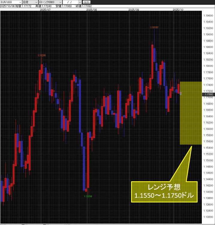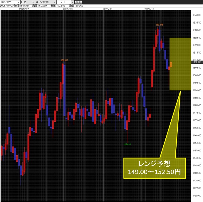 米国の政府機関の閉鎖が続き、経済指標の発表の遅延しており、手探りの展開が続く。今週は明日21日(火)に招集となる臨時国会で首相指名選挙が実施され、高市首相が誕生することを市場は織り込む。