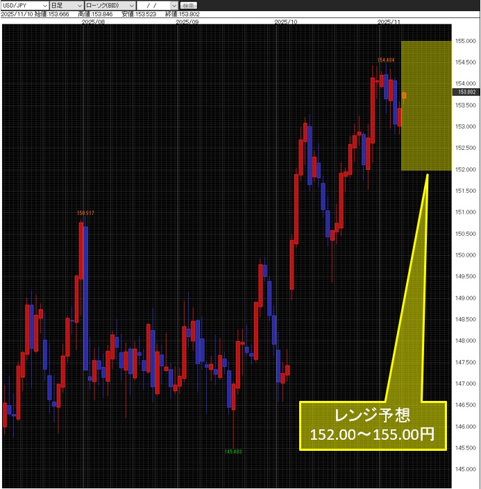 米ドル/円は短期的には152-155円を想定。押し目は買いと想定している。