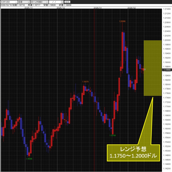 今週の週明けは、先々週から進んだドル売りの継続性を試す展開と予想する。しかし、本日16日(月)は、米国ではプレジデンツ・デーの祝日であり、米国株と米国債の取引が終日休場、目立った動きは明日17日(火)からかもしれない。