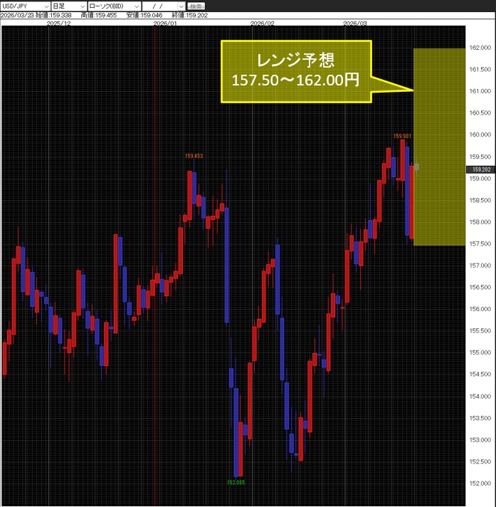 今週は米ドル/円で157.50~162.00円、ユーロ/米ドルで1.1400~1.1700ドル、ユーロ/円で182.00~186.00円と見ている。