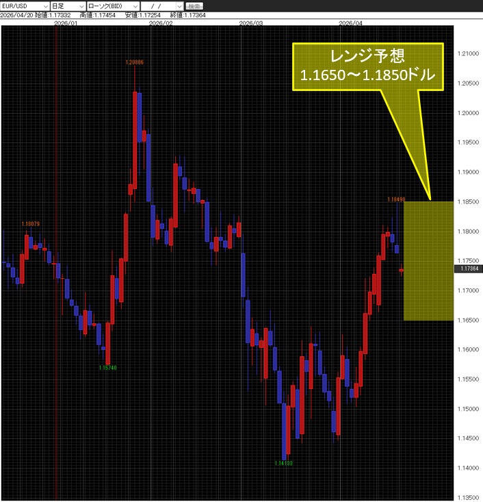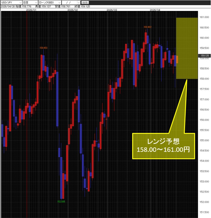 今週は米ドル/円で158.00~161.00円、ユーロ/米ドルで1.1650~1.1850ドル、ユーロ/円で185.00~188.00円と見ている。