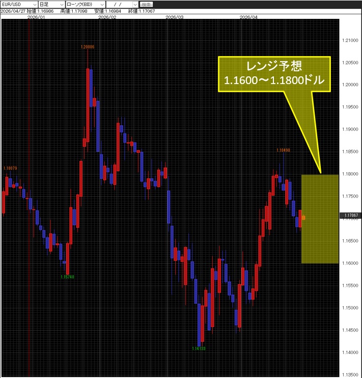 今週は米ドル/円で158.00~161.00円、ユーロ/米ドルで1.1600~1.1800ドル、ユーロ/円で185.00~188.00円と見ている。