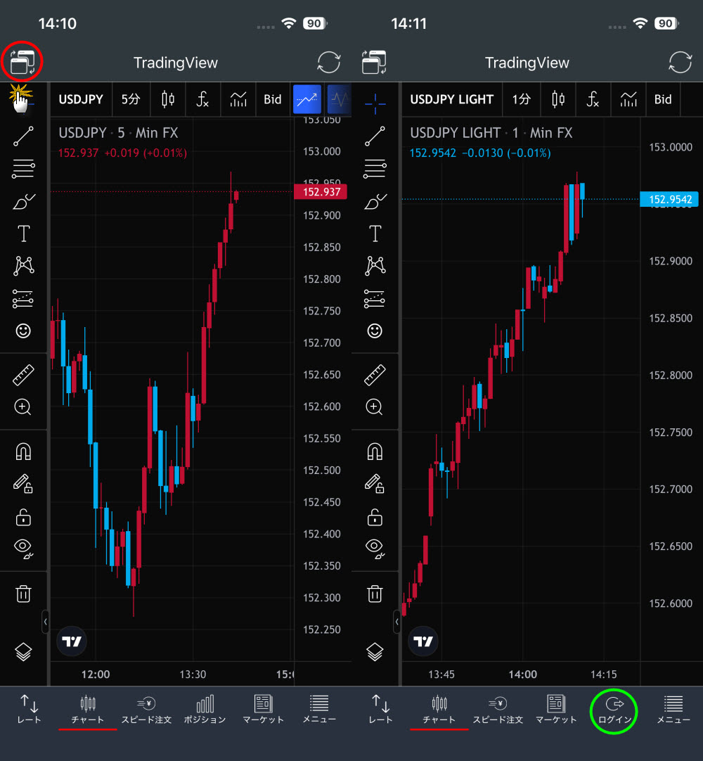 LINE証券[LINEFX]のTradingView(スマホアプリ)